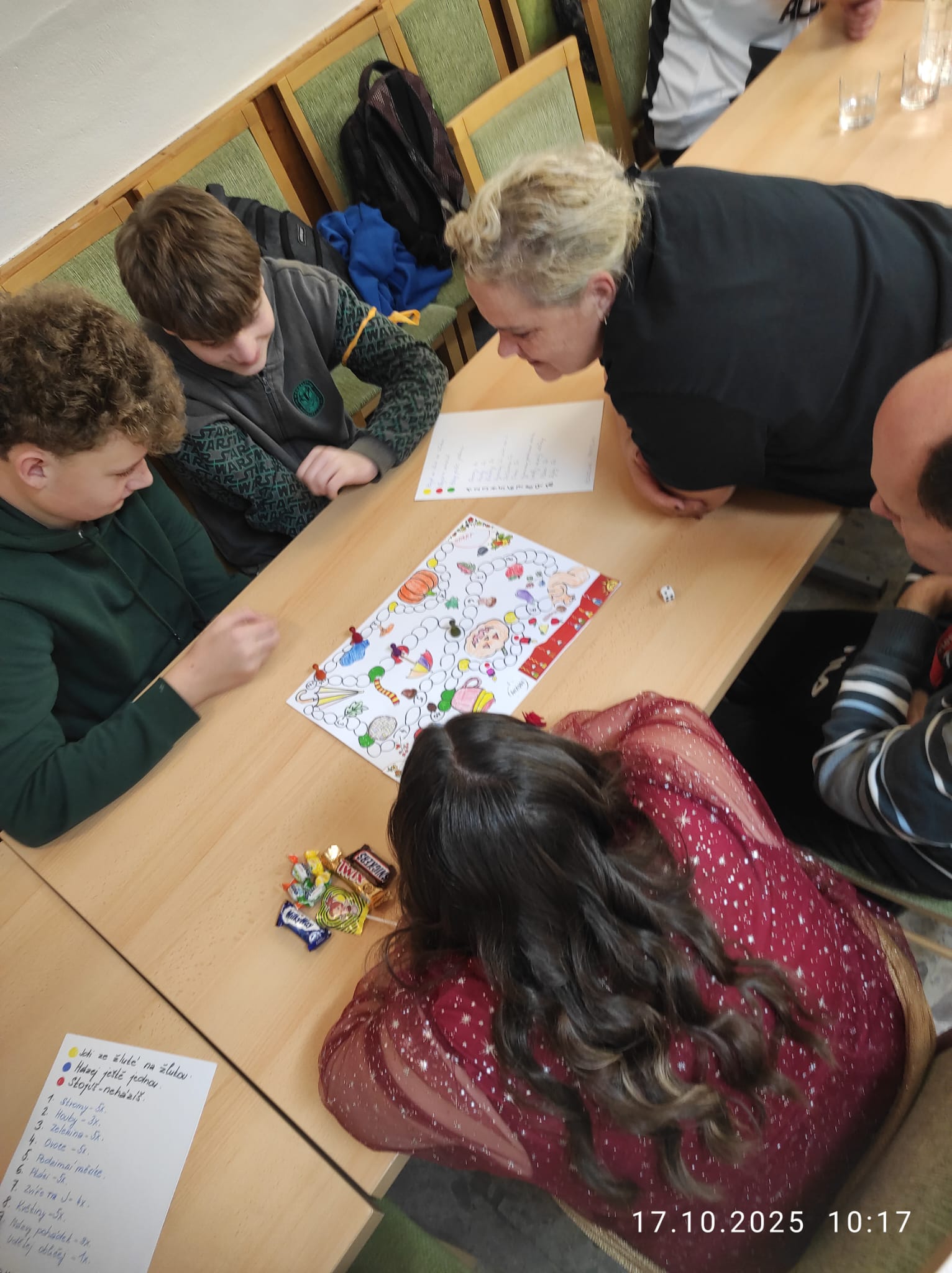 Na každé setkání se pečlivě připravujeme, a ani tentokrát nechyběly aktivity s podzimní tematikou. Společně jsme vytvořili dva velké, barevné draky, které jsme pojmenovali „Joker“ a „Kostelka“ a ozdobili mašličkami. Naši žáci k tomu pro kamarády navíc vyrobili i několik zábavných stolních her.