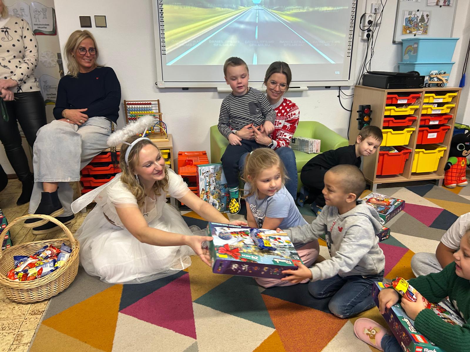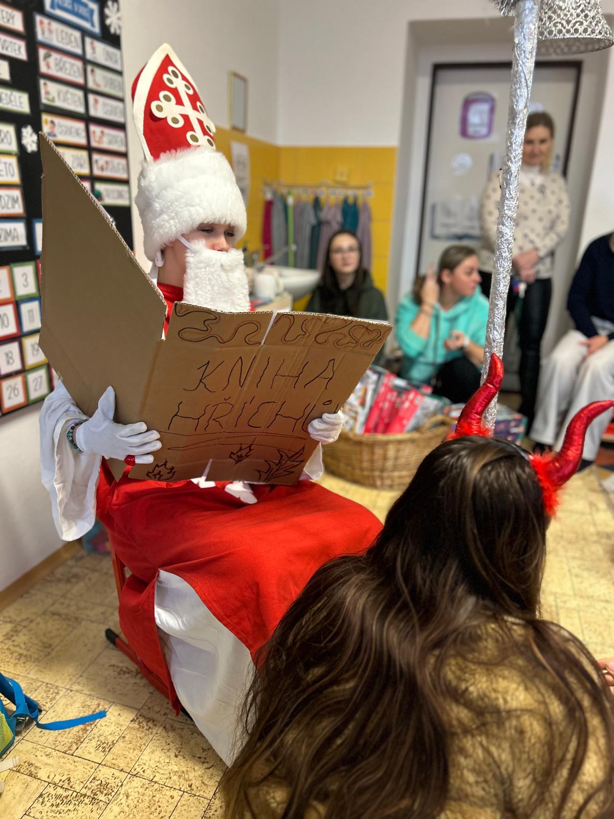 Skupina v čele s Mikulášem a „čerty“ s dobrotami přinesla nejen tradiční perníčky pro každého žáka, ale i hodnotný dárek pro každou třídu: velkou stavebnici LEGO. Návštěva však nebyla jen o dárcích. Deváťáci se rozhodli věnovat každé třídě také svůj čas, během kterého pomáhali s krátkým doučováním, hráli jednoduché hry a vytvářeli příjemnou předvánoční atmosféru.